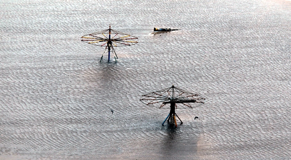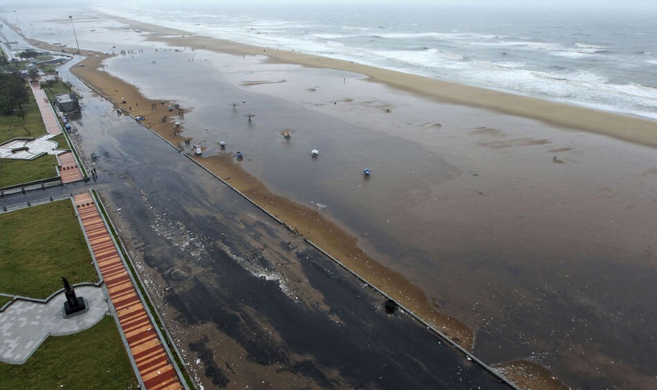| Chennai: An aerial view of Marina Beach after Cyclone Thane in Chennai on Friday. The cyclonic storm on Friday morning moved further westward and crossed north Tamil Nadu coast between Cuddalore and Puducherry. PTI Photo by R Senthil Kumar |