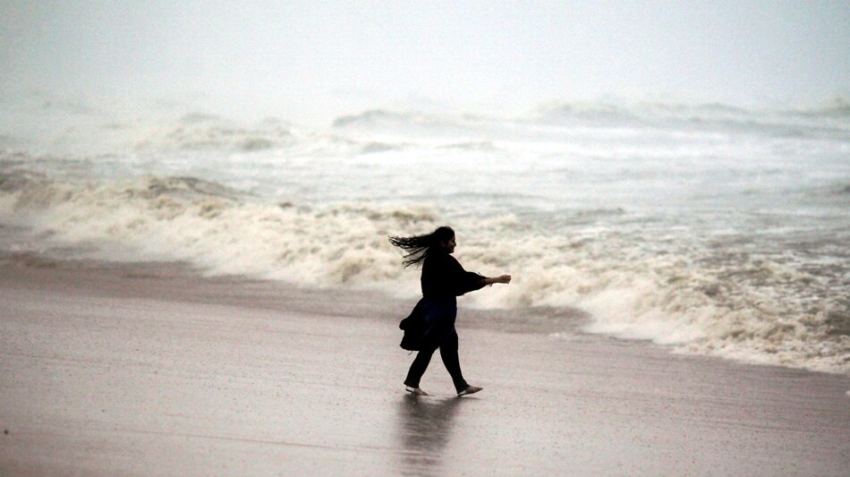 | Chennai: A young girl at Marina Beach after Cyclone Thane in Chennai on Friday. The cyclonic storm on Friday morning moved further westward and crossed north Tamil Nadu coast between Cuddalore and Puducherry. PTI Photo by R Senthil Kumar |
