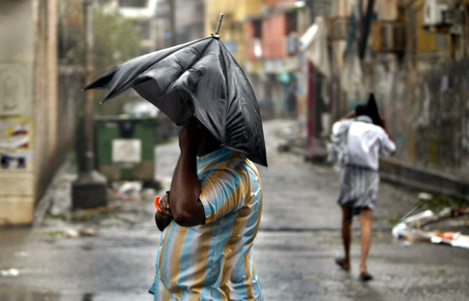| A man stands with an umbrella during heavy winds in Pondicherry, India, Friday, Dec. 30, 2011. India's weather office has warned residents along parts of the country's southeastern coast that Cyclone Thane is likely to cause heavy rains and gale-force winds. (AP Photo/Aijaz Rahi) |