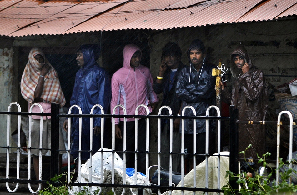 | People take shelter during heavy rain and wind in Pondicherry, India, Friday, Dec. 30, 2011. India's weather office has warned residents along parts of the country's southeastern coast that Cyclone Thane is likely to cause heavy rains and gale-force winds. (AP Photo/Aijaz Rahi) |