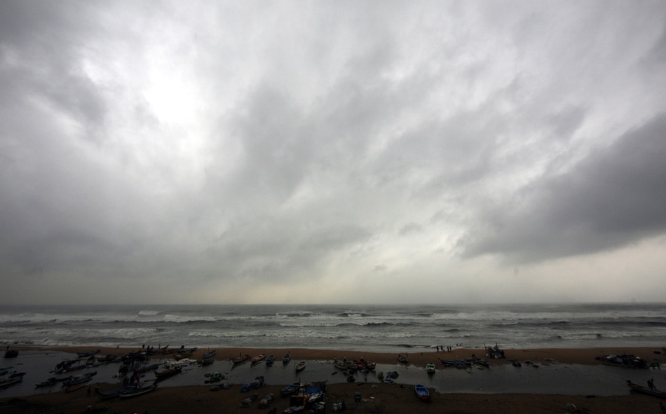 | Fishing boats are seen as water levels rise on the beach on the Bay of Bengal coast in Chennai, India, Thursday, Dec. 29, 2011. Tropical Cyclone Thane, located in the Bay of Bengal, is forecast to make landfall on the southern coast of India, south of Chennai near Puducherry, early Friday morning. The cyclone is expected to bring heavy rains, strong winds and dangerous waves to the region as it approaches.(AP Photo/Arun Sankar.K) |