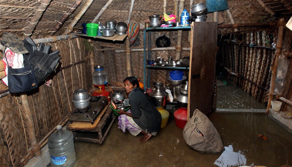 | Chennai: A woman inside her thatched house at Srinivasapuram near Marina beach in Chennai on Thursday. The coastal districts in the state have been put on high alert in view of Cyclone Thane which is currently near off the coast of Chennai and is likely to cross the coast on December 30. PTI Photo by R Senthil Kumar |